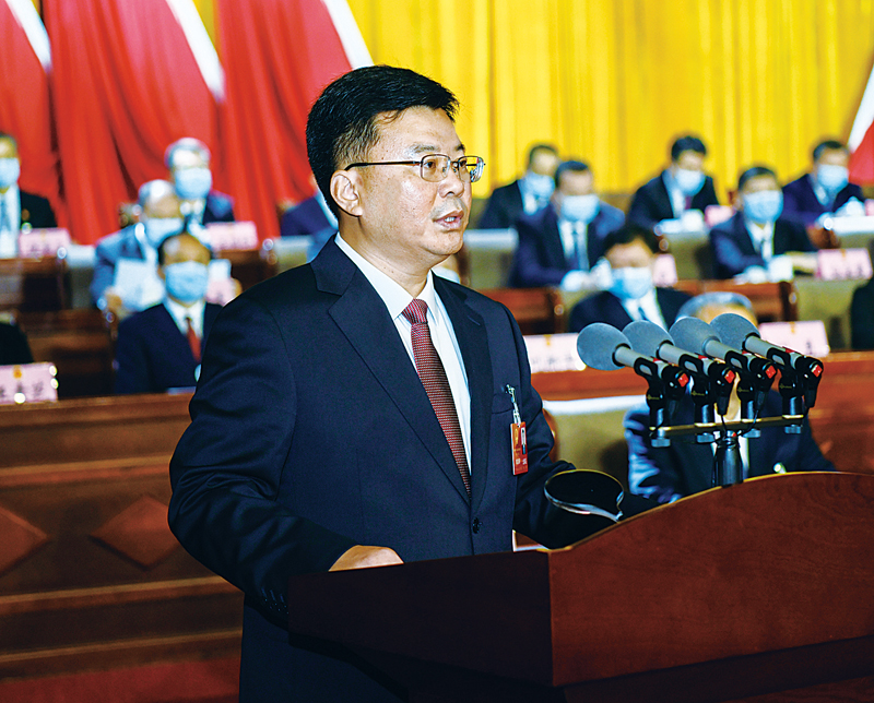 新當(dāng)選的市人民政府市長柴寶良在大會上講話。? ? ? ? 本網(wǎng)記者王立群攝