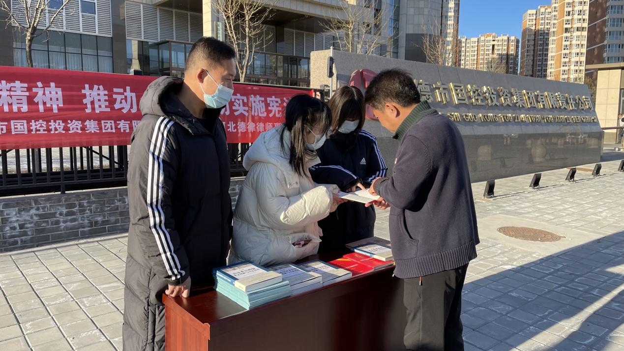 在線下,市國控集團聯(lián)合公司常年法律顧問——河北德律律師事務所共同開展普法宣傳活動。