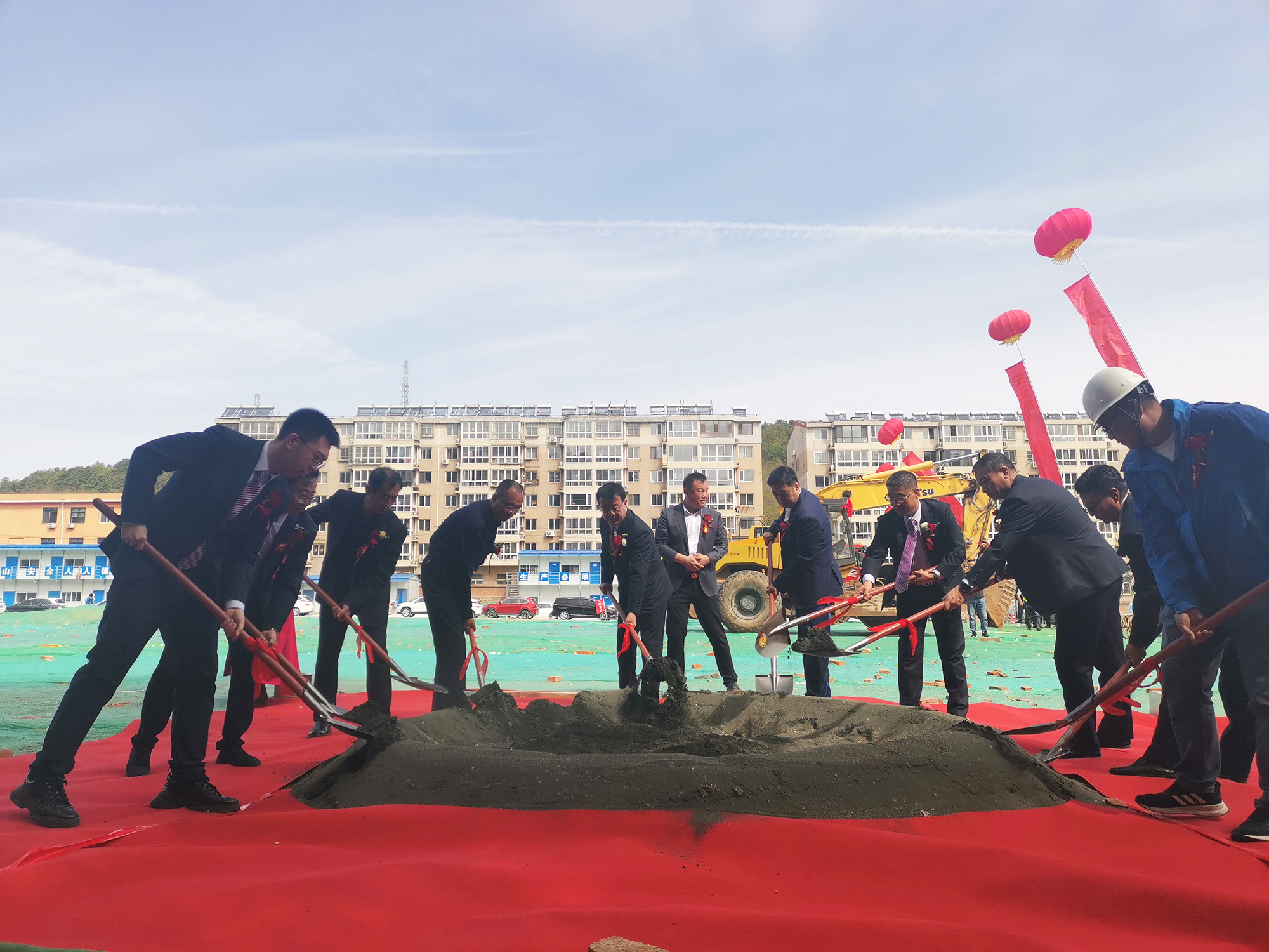 9:40分,承德國控集團黨委書記、董事長張建軍為祥獅點睛,伴著鼓聲開始舞動,送上祥瑞和祝福,祝國越家園項目開工大吉。隨后領導們共擎金鍬,揚土培基,現(xiàn)場工程器械全面開工作業(yè),儀式圓滿閉幕。